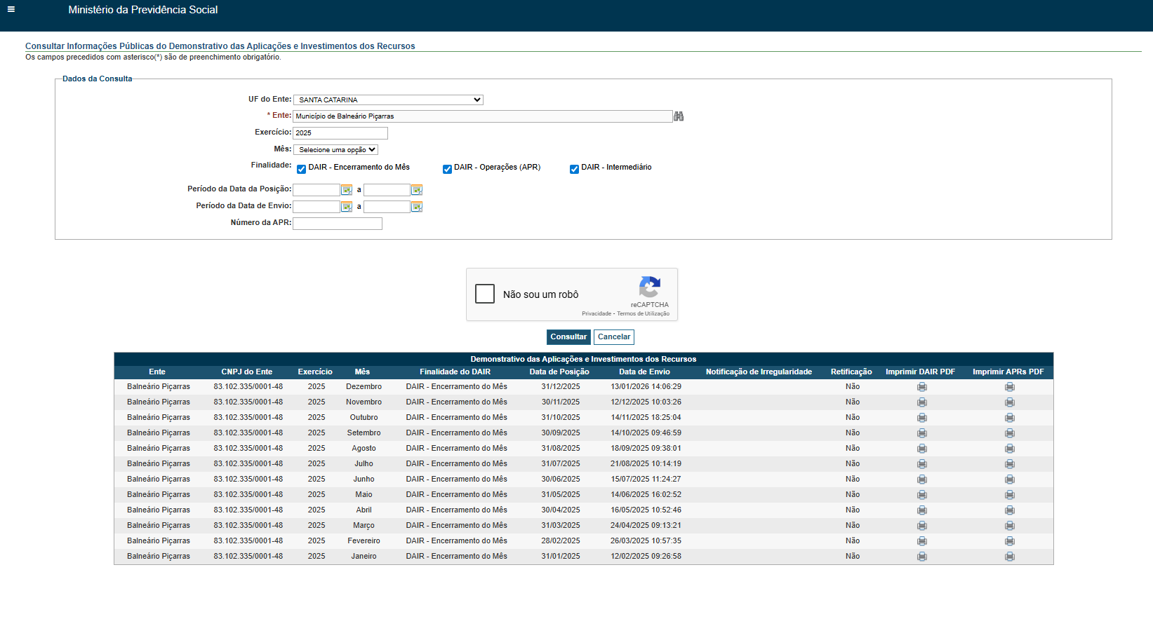 | 2025 | 12 | Não | Demonstração DAIR – Dezembro | Visualizar |